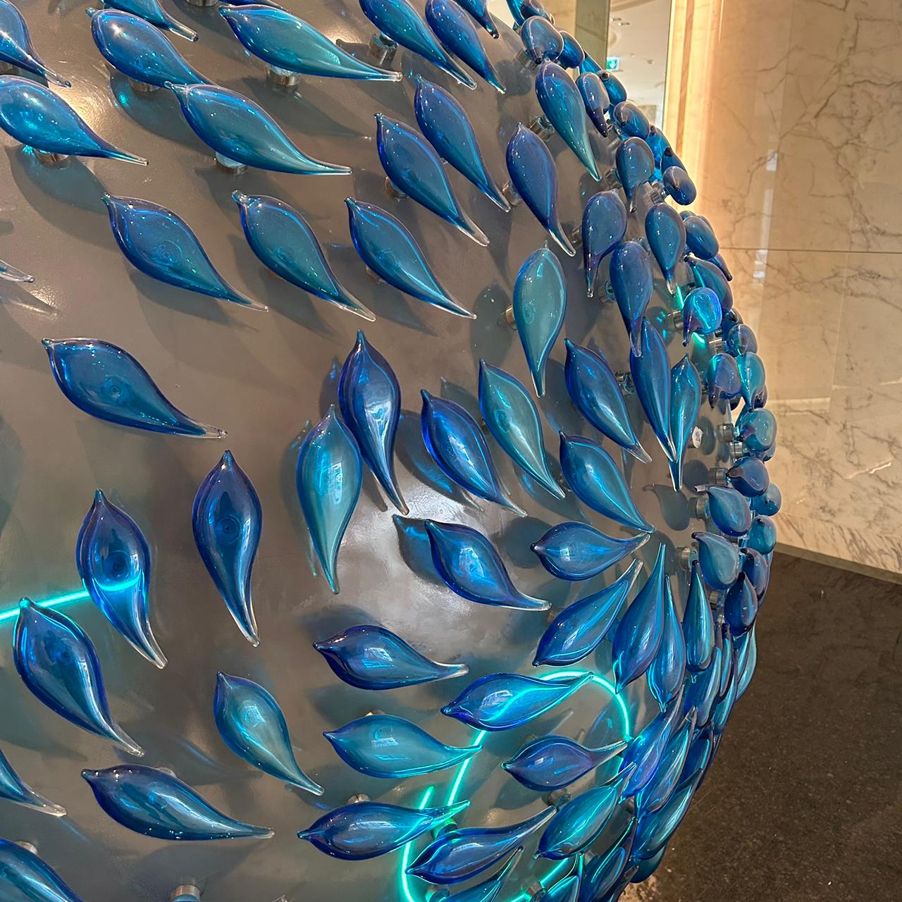 Created by renowned artist Michael Macleod, this stunning piece of art is an intricate 3m*3m structure made from glass, Murano fish and other carefully-chosen materials. Its mesmerizing hues and evocative design bring the oceans to life, while its unique story shines through every dazzling detail. It’s a captivating creation that needs to be seen up close in order to really appreciate its beauty.