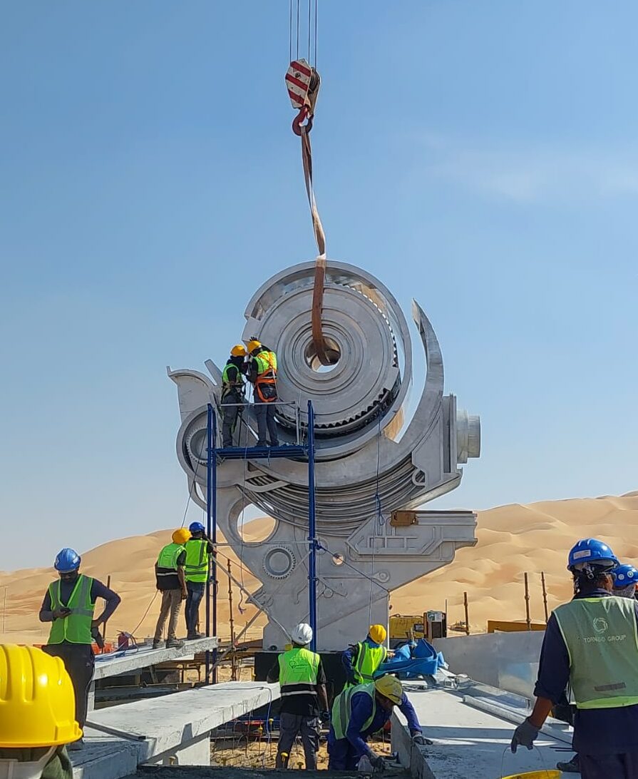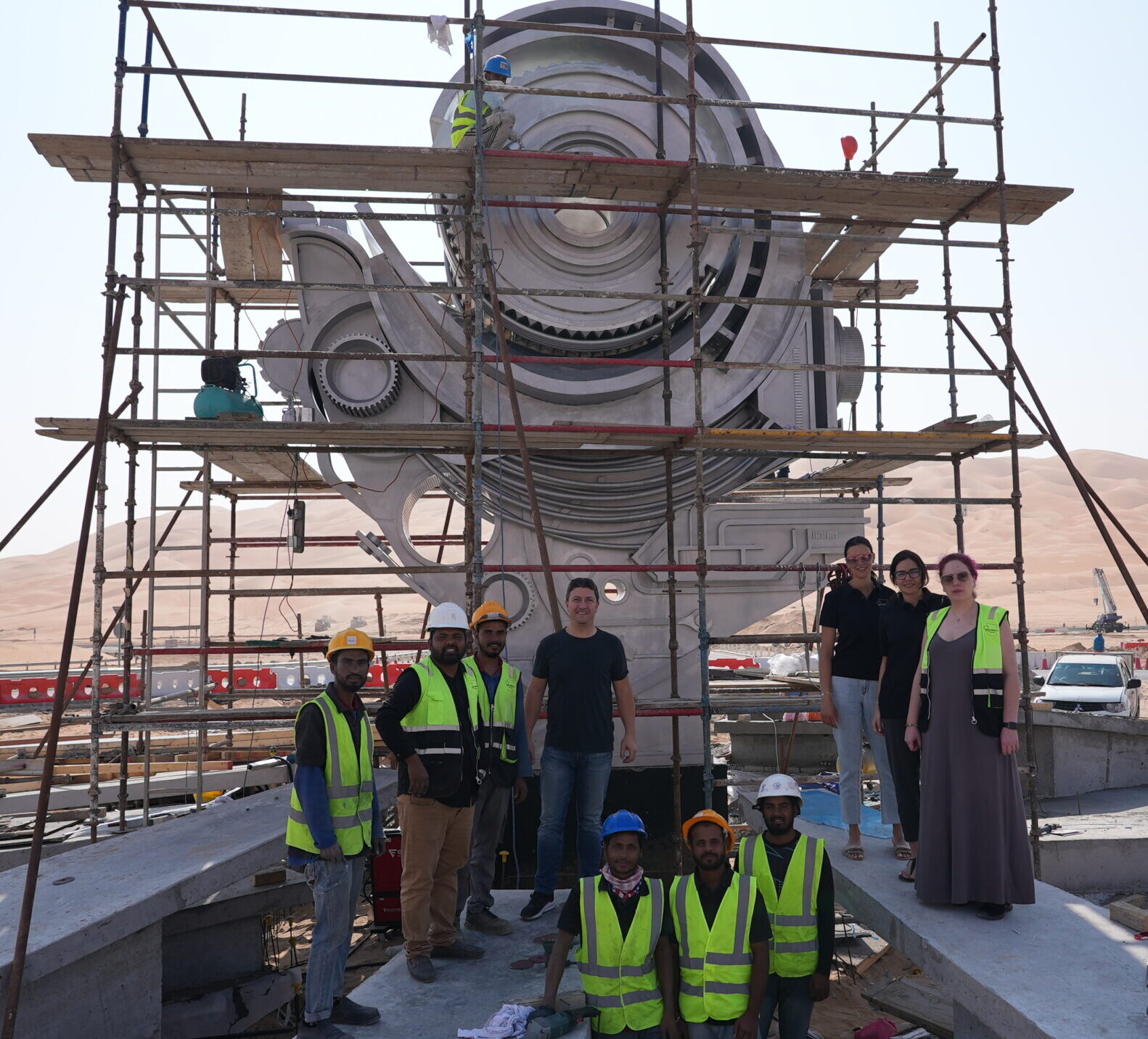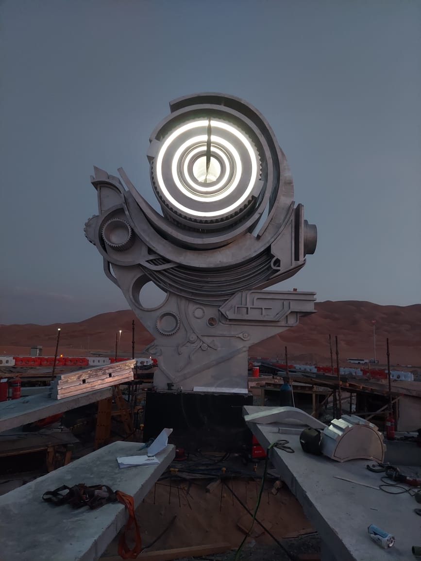 As the masterpiece took form in the hands of our production team, the countdown to installation began. With a towering height of 7 meters and a weight exceeding one ton, the Motor sculpture presented both creative and logistical challenges. Nevertheless, our seasoned installation crew rose to the occasion, carefully situating the sculpture at the heart of the Liwa Sculpture Roundabout.
