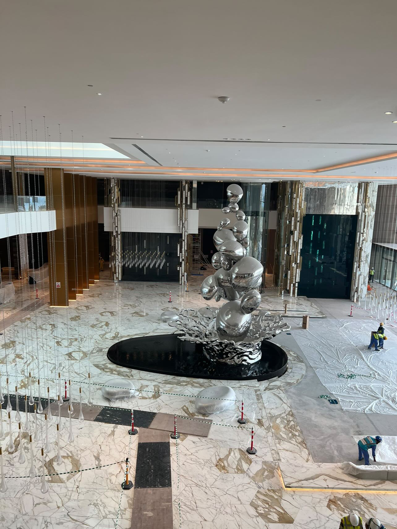 “Droplets” is more than just an art piece; it is a powerful symbol of life and renewal, masterfully executed by Signature Project ME. Its installation at The Royal Atlantis not only enhances the aesthetic value of the space but also resonates with the theme of sustainability and the preciousness of natural resources. As a prominent feature of the Royal Atlantis artwork collection, “Droplets” exemplifies the luxurious and culturally immersive experience that the hotel offers to its guests.